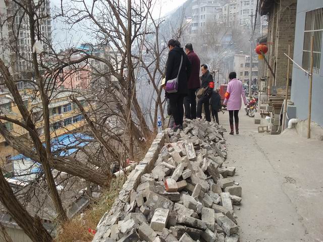 城关镇老城社区瓦窑沟巷路边围墙因为年久失修而垮塌,已经垮塌的危墙成为影响市容观瞻的一大问题,在老城片区双创督导组的积极协调下,交通局筹资7万元,聘请6名工人,拆除旧围墙,并开工建设长85米的新围墙。同时,配合危墙改造,督导组请人清理瓦窑沟巷边坡上的白色垃圾老城社区督导组聘请2名工人清理了3天,共清理垃圾3吨,并将一些枯枝败叶进行了彻底清理,使片区环境焕然一新。