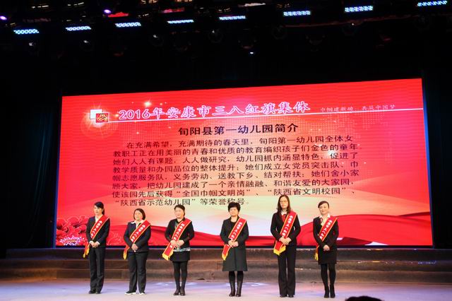 “三八国际妇女节”来临之际,旬阳县第一幼儿园再传捷报,该园喜获 “安康市三八红旗集体”荣誉称号,3月7日,由安康市妇联会举办隆重的颁奖仪式,该园园长吕晓丽代表接受表彰。