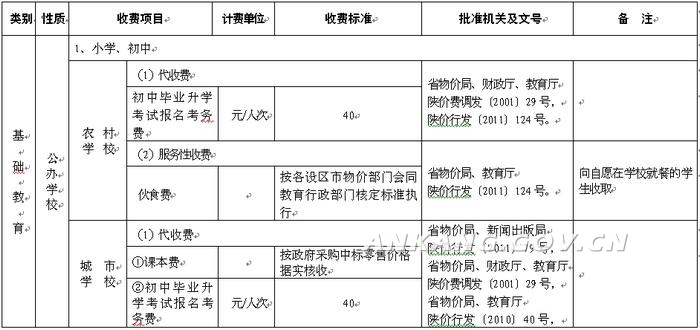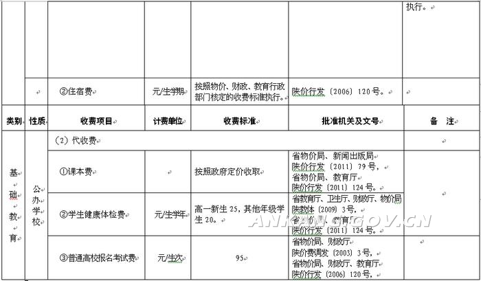 为切实加强教育收费管理,进一步规范学校收费行为,按照《陕西省教育收费公示制度》的有关规定,现将我省2016年春季中小学校收费项目及标准予以公告。