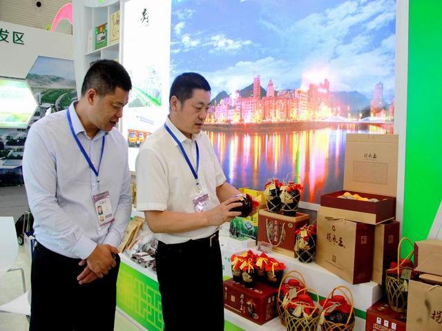 展会共设置1个主会场、3个分会场,总展示面积30万平方米,我县展台位于会展中心B2馆,走近旬阳展台,绿色生态的主基调给人留下良好印象,两块大型灯箱上,中华太极城、乾坤湾太极湖、夜色斑斓大美旬阳等图片吸人眼球,展台前,除了祝尔慷系列农副产品、鸡血石工艺品等熟知展品外,巴山雪饮用水、拐枣功能饮料、拐枣酒、牡丹花茶等产品也走出大山,精彩亮相,迎来了众多客商垂询洽谈。