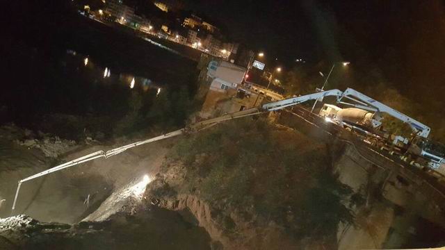 凌晨一点,旬阳县汉江大桥东侧入口景观工程项目建设施工现场,映入眼帘的是一片繁忙的景象,工人正在紧张地作业,泵车正在浇筑混凝土。