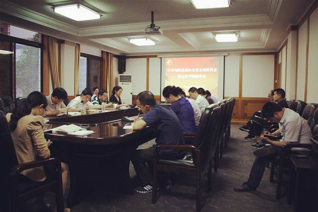 5月30日晚,县委办召开全体干部职工会议,传达贯彻落实县委“两学一做”专题党课会议精神,并学习解读两个《条例》,用实际行动向县委看齐。会上,县委办主任许明武将县委梁书记、县政府陈县长党课精神原原本本地传达学习后要求,县委办要认真贯彻好、落实好会议精神,紧紧围绕“两学一做”学习教育,深入开展“亮晒作”全员行动,努力打造一支“向我看、跟我干、敢担当”黄牛式“狮子型”干部队伍,以当好“五个表率”为努力方向,进一步提升“三服务”水平,为县域经济社会发展作出应有贡献。