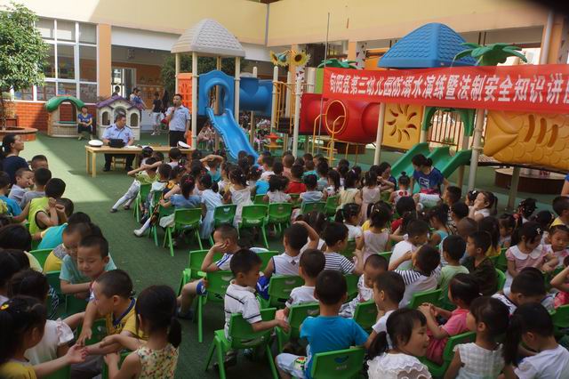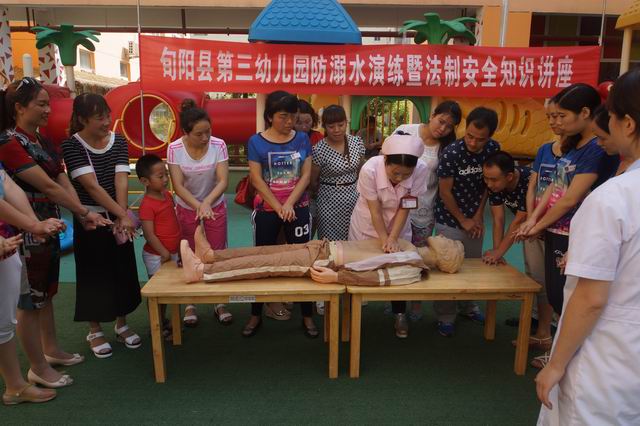 为增强师幼及家长安全意识,严防不安全事故的发生,6月28日,旬阳县第三幼儿园开展了“防溺水演练活动暨法制安全知识讲座”,给大家带来了一节别样的安全教育大课堂。