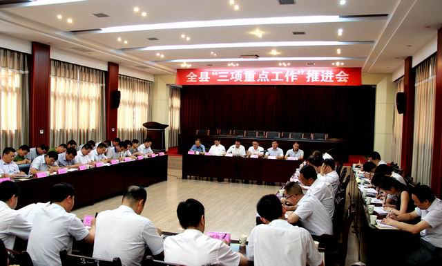 会议听取和分析了我县当前“三项重点工作”的进展情况、存在问题和今后需要补齐的短板以及需要强化的工作。