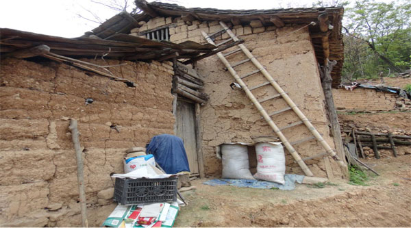 图为山坡上老旧的民房