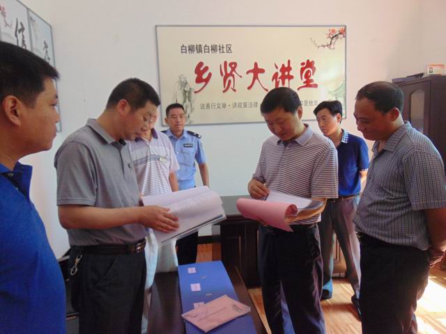 曾炜一行来到社区司法调解室,查看了调解案卷及“三官一律”进社区相关制度,在肯定工作的同时强调一定要把“三官一律”进社区工作做细做实。