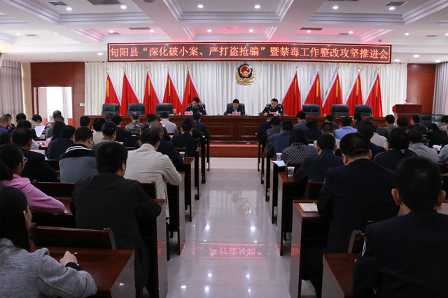 10月11日,我县召开“深化破小案、严打盗抢骗”暨禁毒整改攻坚推进会。县委常委、政法委书记曾炜,县政府党组成员、公安局长张成功出席会议。