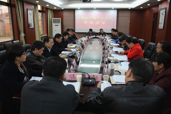 11月22日,县政协召开八届二十八次常委会议。县政协主席田丽萍主持会议,县委常委、副县长程海林,县委常委、政法委书记曾炜,县委常委、统战部部长李萍,县政协副主席王成书、朱远胜、向敏毅出席会议。