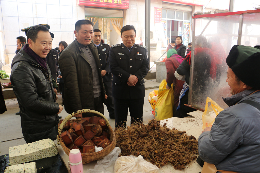 12月29日,县长陈红星在城区检查双节期间安全生产及市场供应等工作,副县长、公安局局长张成功陪同检查。