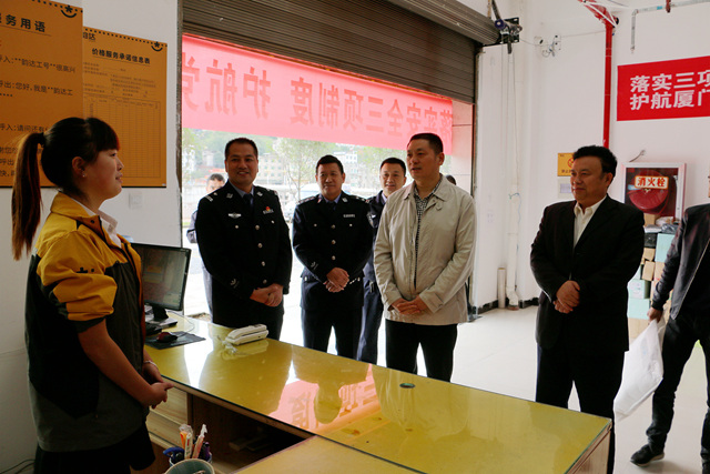 陈红星先后实地检查了吕河派出所、城关派出所、上渡口公安检查站、交警大队、寄递物流安检中心等单位安保维稳措施落实情况,对吕河派出所“贴心工作法”窗口服务、城关派出所智慧勤务指挥系统、智慧交通平台、流动车管所等好的做法给予充分肯定,要求积极总结提炼先进工作经验,形成品牌在全县推广。看望了坚守岗位的执勤民警,要求各级公安干警要按照“战时高于平时、严于平时”的要求,扁平化指挥调度,盯住重点人群,把好重要关口,切实加强物流、人流、信息流监管,大力提升“打防管控服”综合实战效能。陈红星还到县信访局检查了党的十九大期间信访维稳工作。