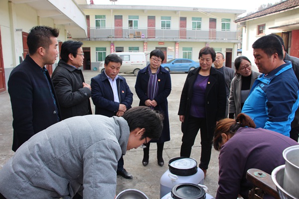 11月22日,县政协主席田丽萍在段家河天正酿造公司调研拐枣产品研发情况。