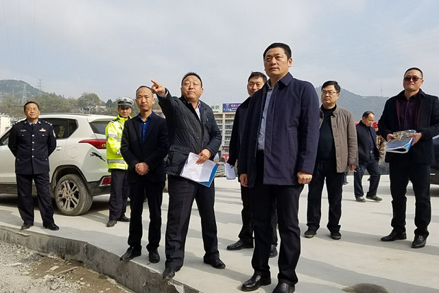 12月4日,县长陈红星在城区检查祝尔慷大道改建、旬河大桥工程建设,县委常委、常务副县长邹伟一同检查。