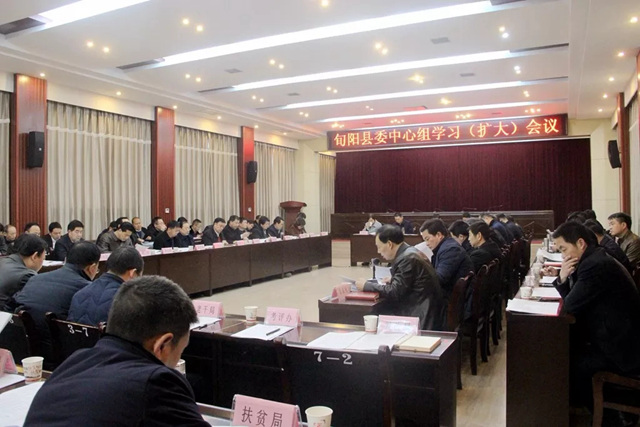 2月22日下午,节后第一天上班,旬阳县召开县委中心组学习(扩大)会议,传达学习上级有关文件、会议精神,安排部署了脱贫攻坚等重点工作。县人大常委会主任陈德智,县委副书记、县长陈红星,县政协主席田丽萍等全体在家县级领导出席会议。