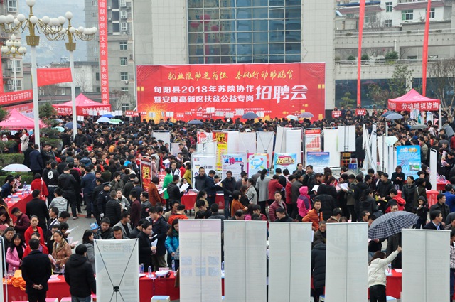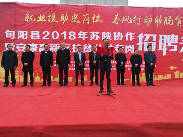 3月1日,以“就业援助送岗位,春风行动助脱贫”为主题的旬阳县2018年苏陕协作暨安康高新区扶贫公益专岗招聘会成功举办。安康高新区管委会副主任张志群,县上领导王武臣、邹伟、刘连文、赵明、王成书、梁平及天宁区人社局、天宁区科技局相关同志出席开幕式并到会指导。