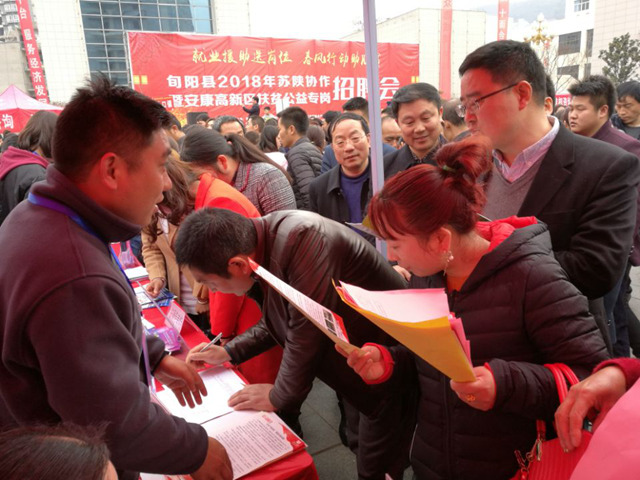 为做好今年的苏陕协作暨安康高新区扶贫公益专岗招聘会工作,县扶贫局、县残联、县妇联、团县委、县农林科技局相关部门积极配合协作。全县各镇社保站认真组织辖区内用人单位贫困群众和富余劳动力参加招聘会。仙河、铜钱关等镇还安排专车将有务工意向的劳动者集中起来,统一免费接送到招聘会现场,并安排当天伙食,对在现场与安康高新区达成用工意向的免费送到实地参观面试。