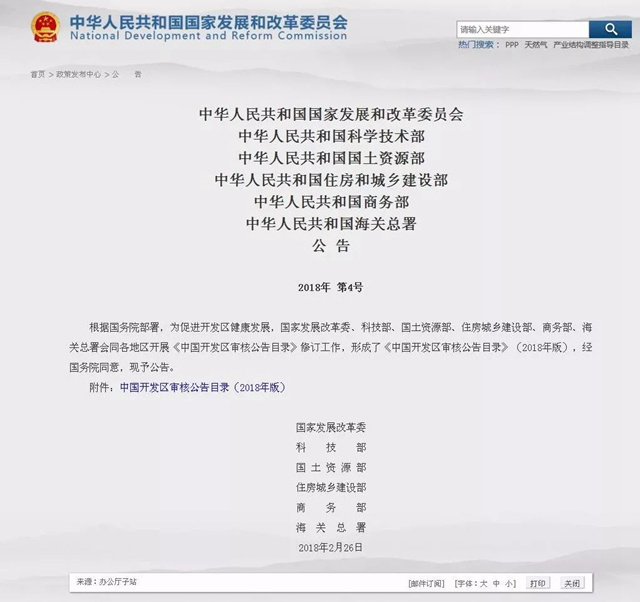 △中国开发区审核公告目录(2018年版) 2018年第4号公告