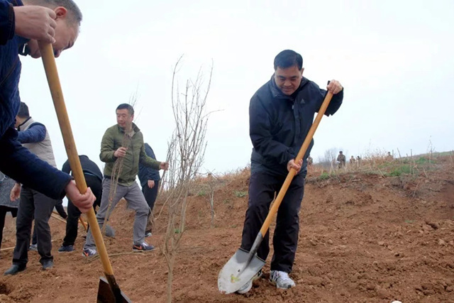 在植树现场,处处是热火朝天的劳动场面。县领导与干部群众一起将一棵棵树苗植入刚挖好的树坑,然后铲土填坑、挥锹、扶苗、培土,每道工序都做的一丝不苟。劳动间隙,梁涛不时与植树的工作人员交谈,叮嘱大家下功夫保护好生态环境,用汗水细心浇灌,让山头更绿,让生态更美。经过一个多小时的奋战,现场栽植软籽石榴苗1000余株,一排排新栽下的小树昂然挺立,在明媚阳光中展现出蓬勃生机。