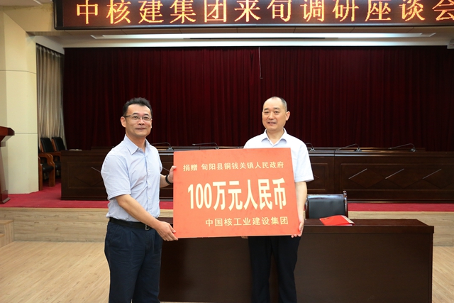 座谈会上,我县汇报了全县脱贫攻坚及中国核建集团联县扶贫工作情况,中核建集团与铜钱关镇签订精准扶贫帮扶协议书,分别为铜钱关镇、城关镇捐赠100万元扶贫资金。