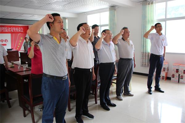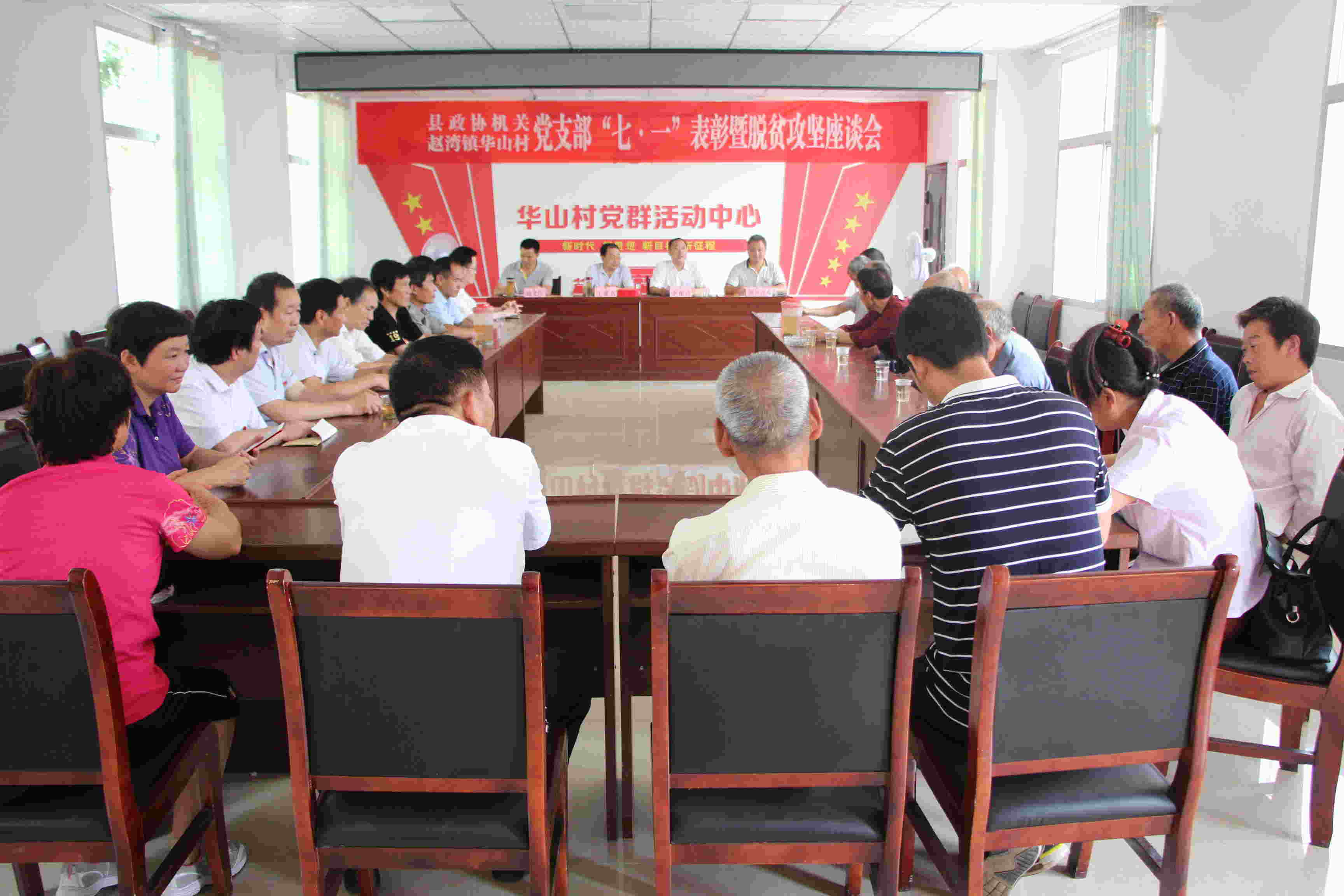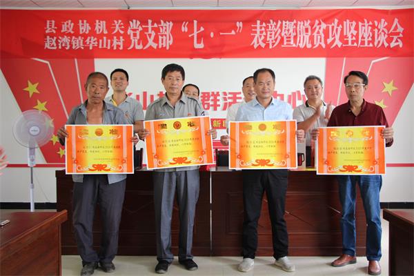 6月26日,县政协机关和华山村党支部开展举行“七一”表彰暨脱贫攻坚座谈活动。县政协副主席王成书,秘书长李相琦出席活动。