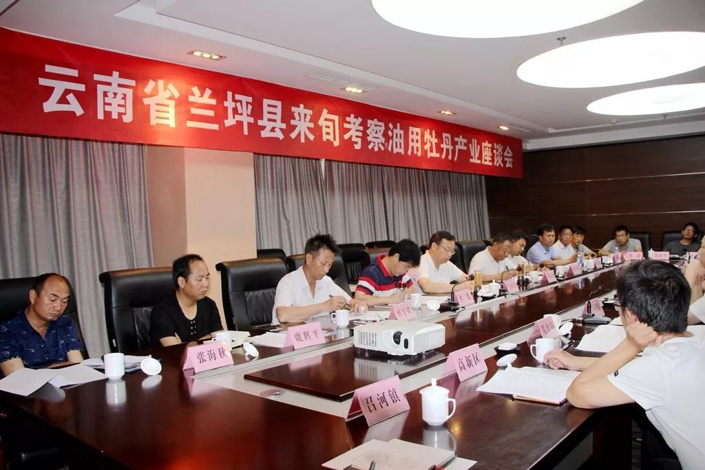 座谈会上,与会人员听取了旬阳县发展油用牡丹产业建设情况。双方就规模建园、政策扶持、资金投入等方面进行了深入交流。