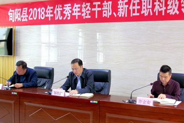 10月9日,旬阳县2018年优秀年轻干部、新任职科级领导干部培训班开班。县委常委、组织部长邹仕海出席开班式。