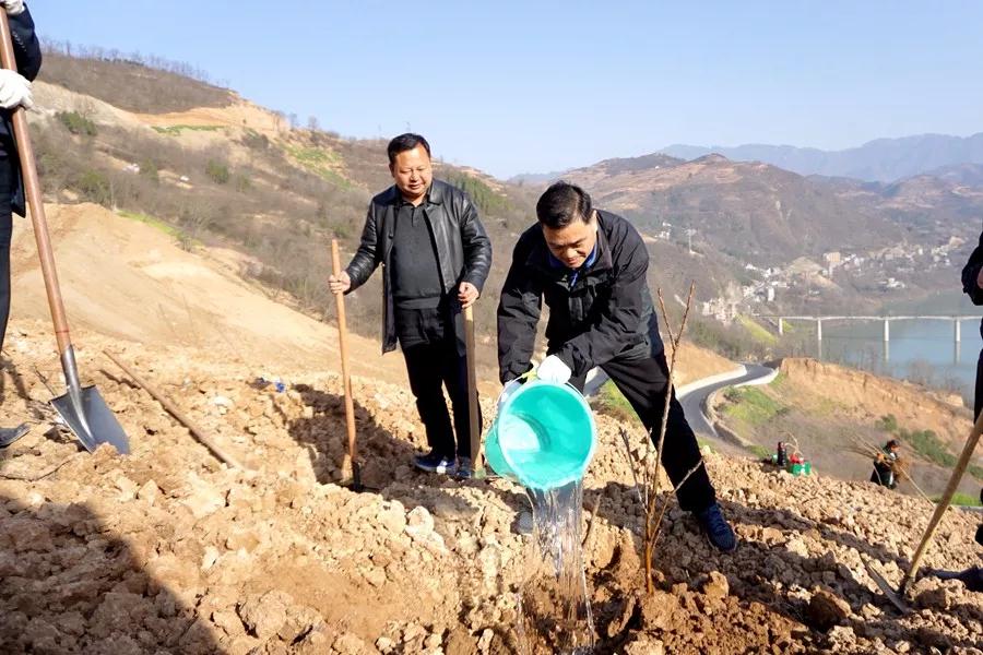 阳春三月,万物复苏。旬阳的山山岭岭处处涌动着植树造林的热潮。3月12日,在城关镇李家台村植树点,县委书记梁涛、县人大常委会主任陈德智、县长陈红星、县政协主席田丽萍等四大家领导与各机关单位干部一起参加义务植树。挖坑、栽植、培土、浇水……现场忙碌而热闹。当日,该植树点共栽植车厘子树苗2500余株。