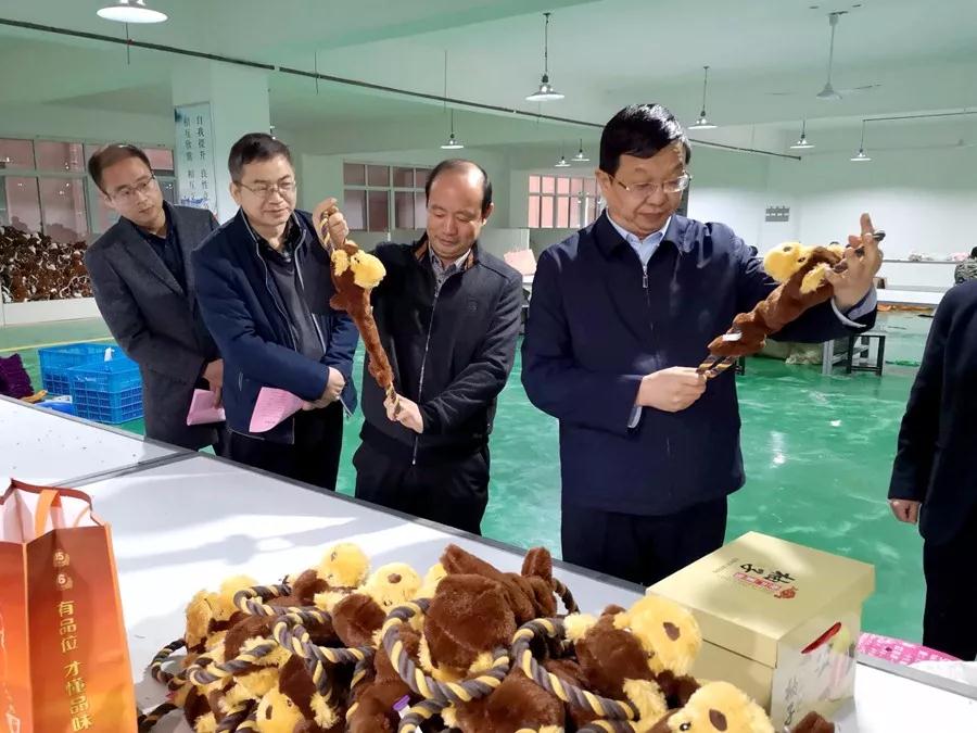 在城关镇草坪社区陕西康之宁玩具礼品有限公司,王卫华实地查看了新社区工厂毛绒玩具展厅、针工车间、机工车间、手工和包装区,详细了解了工厂生产经营状况、用工规模、薪资待遇、扶持政策落实等情况。他要求全力支持产业发展,逐步完善配齐相关设施,用产业带动就业,真正让群众实现“家门口”稳定就业、持续增收、稳步脱贫。