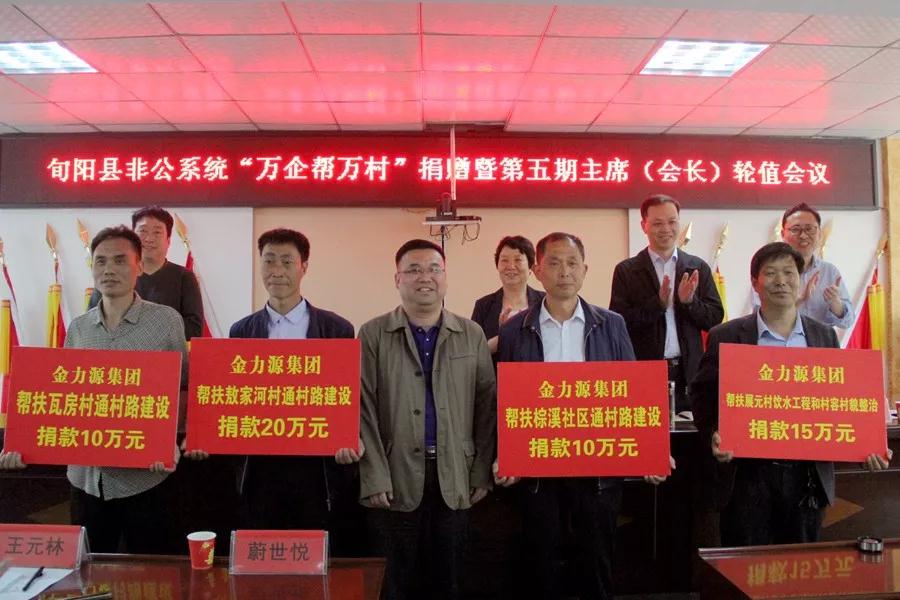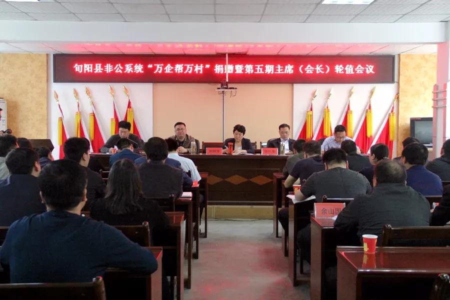 4月24日,旬阳县非公系统“万企帮万村”捐赠仪式暨第五期主席(会长)轮值会议在棕溪镇召开。县政协主席田丽萍,县委常委、组织部长邹仕海出席会议。
