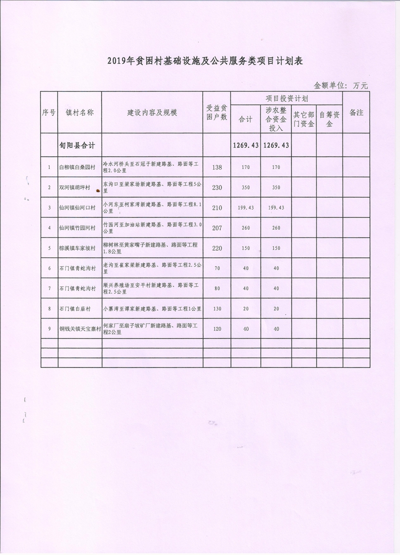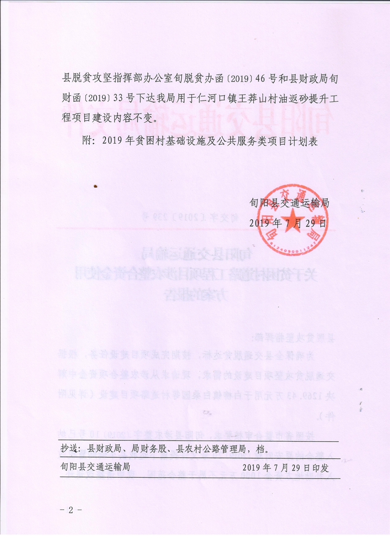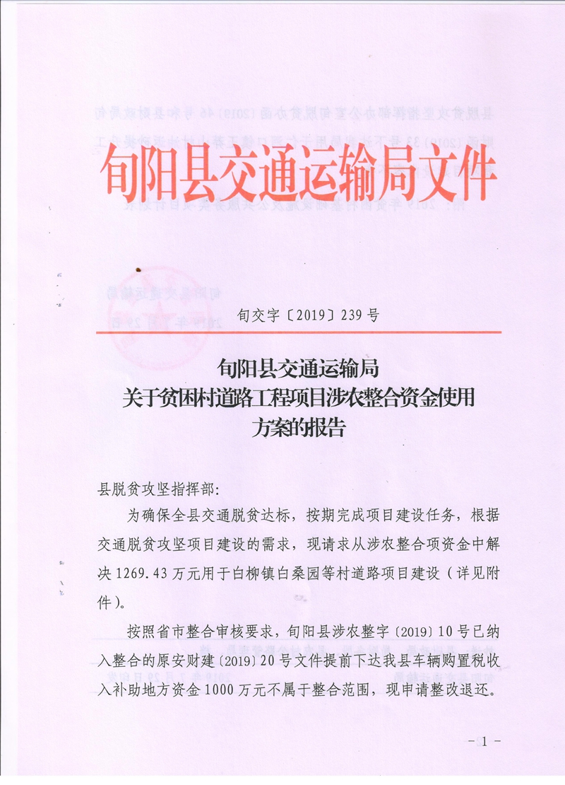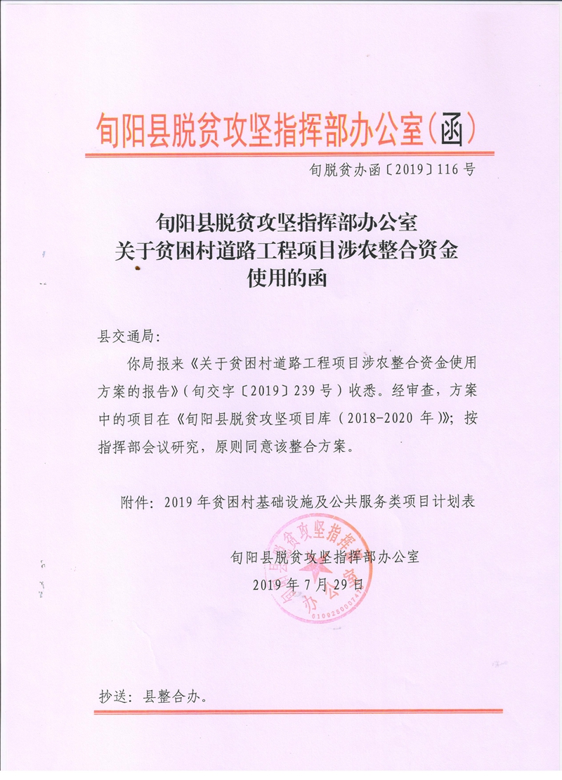关于旬阳县交通局2019年贫困村道路建设项目实施方案的公告