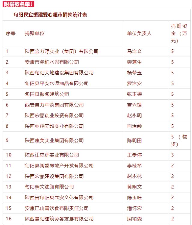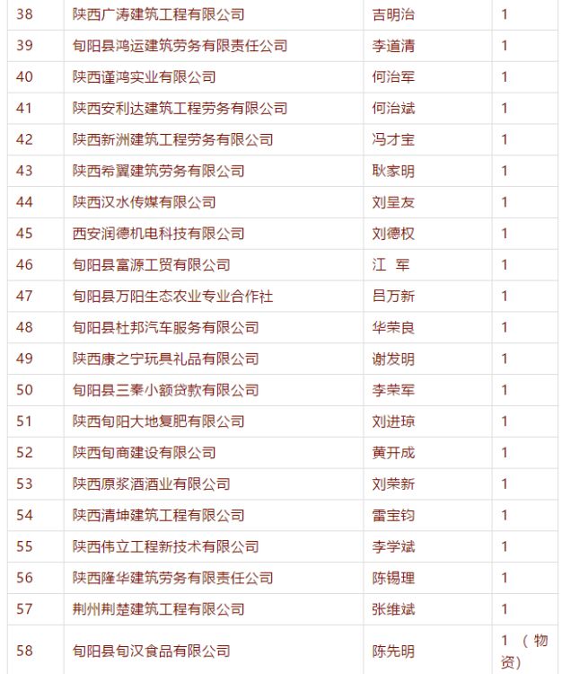 会上,58家非公企业踊跃捐款,奉献爱心,共为脱贫攻坚筹集善款113万元。陕西康美实业集团有限公司、西安自力控股集团有限公司、安康尧柏水泥有限公司、安康巴山雪饮食有限责任公司、陕西奥翔天越实业有限公司5家企业代表分别做了交流发言。