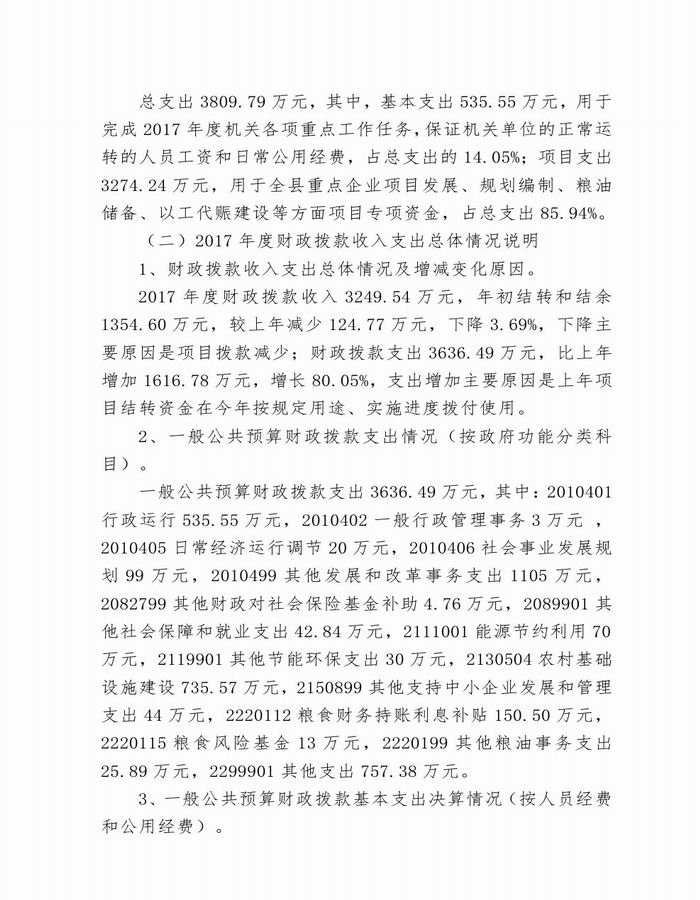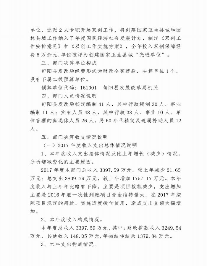 旬阳高新技术产业开发区管委会2017年部门决算公开说明