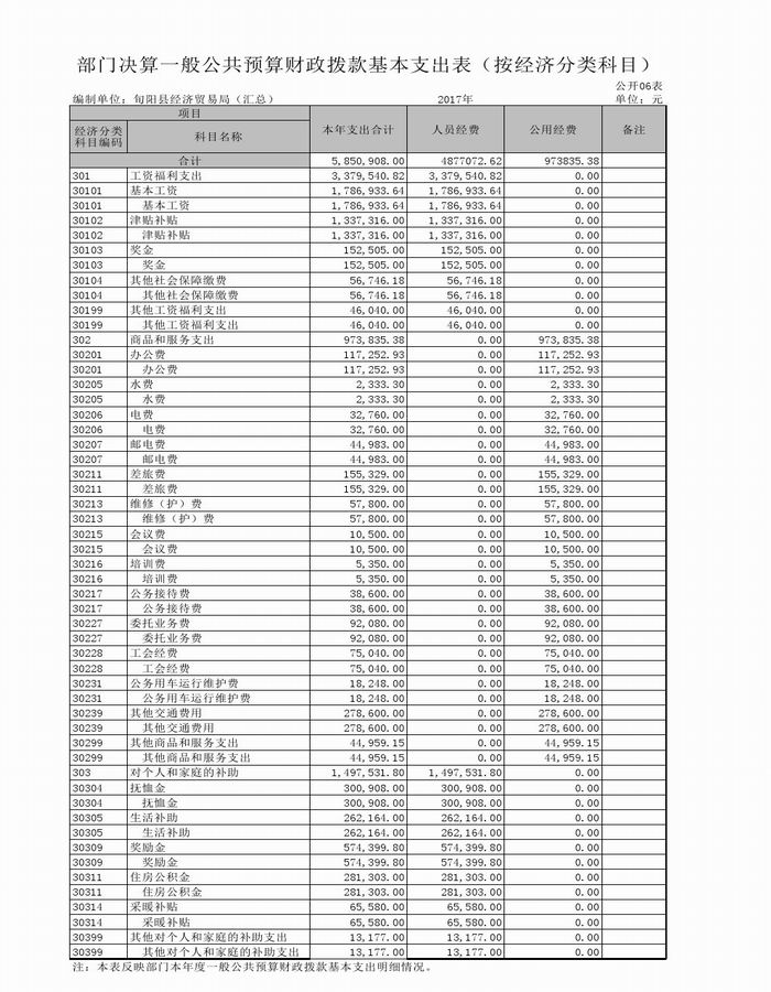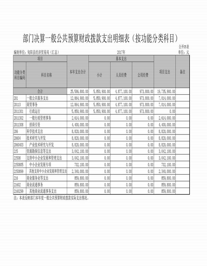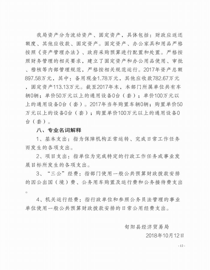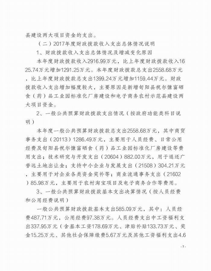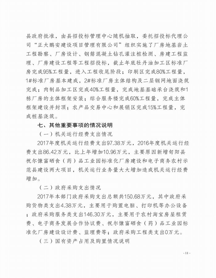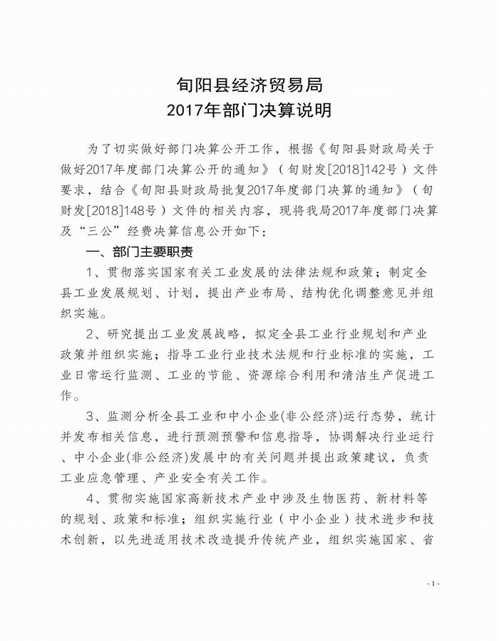 旬阳高新技术产业开发区管委会2017年部门决算公开说明