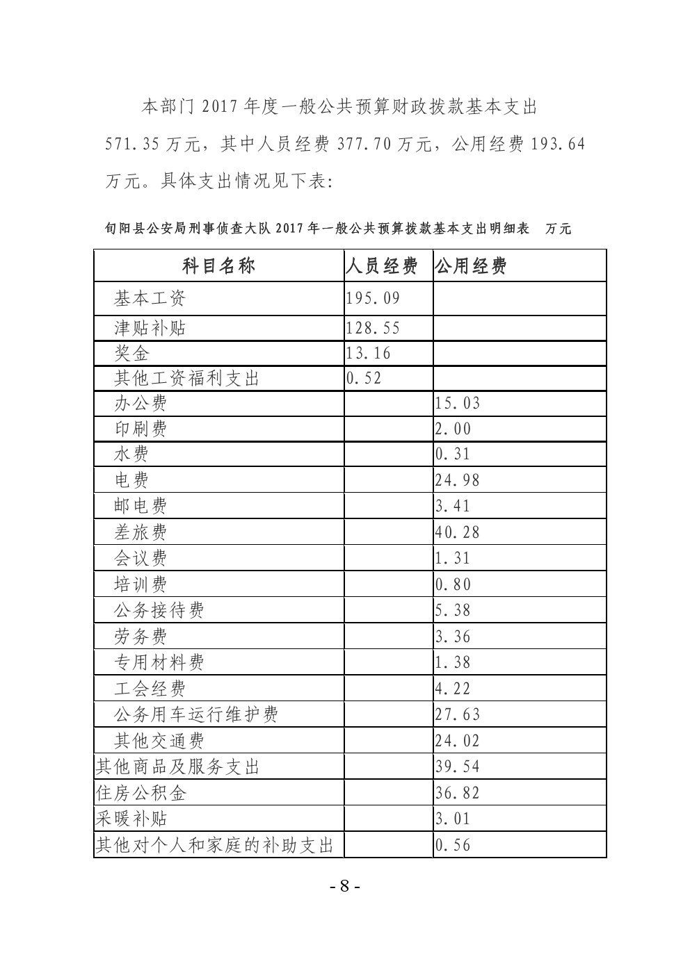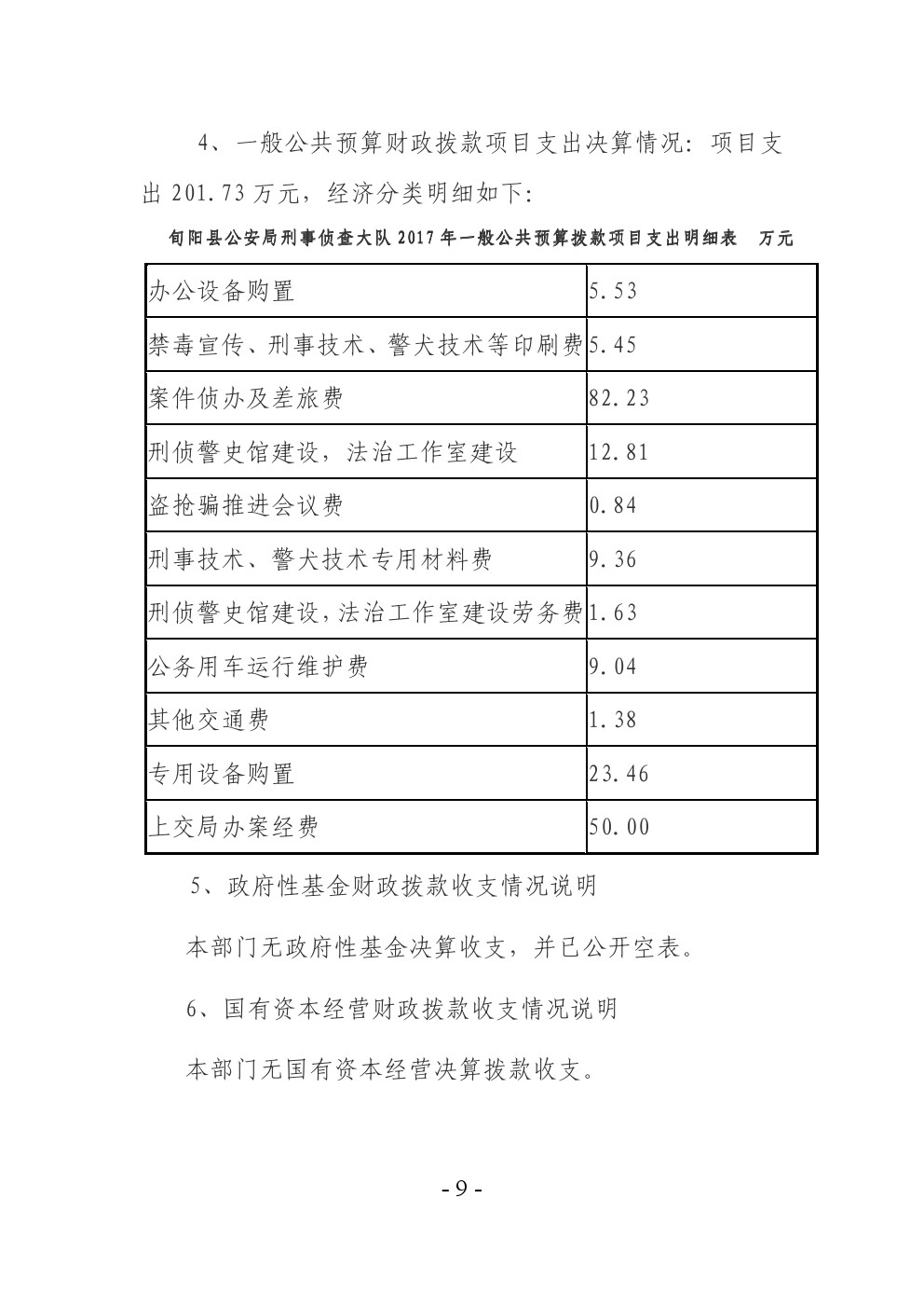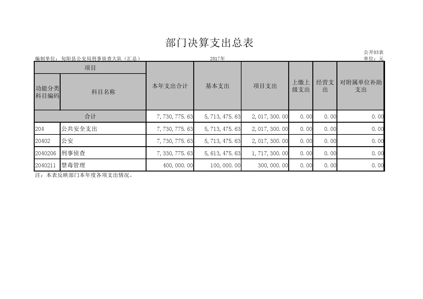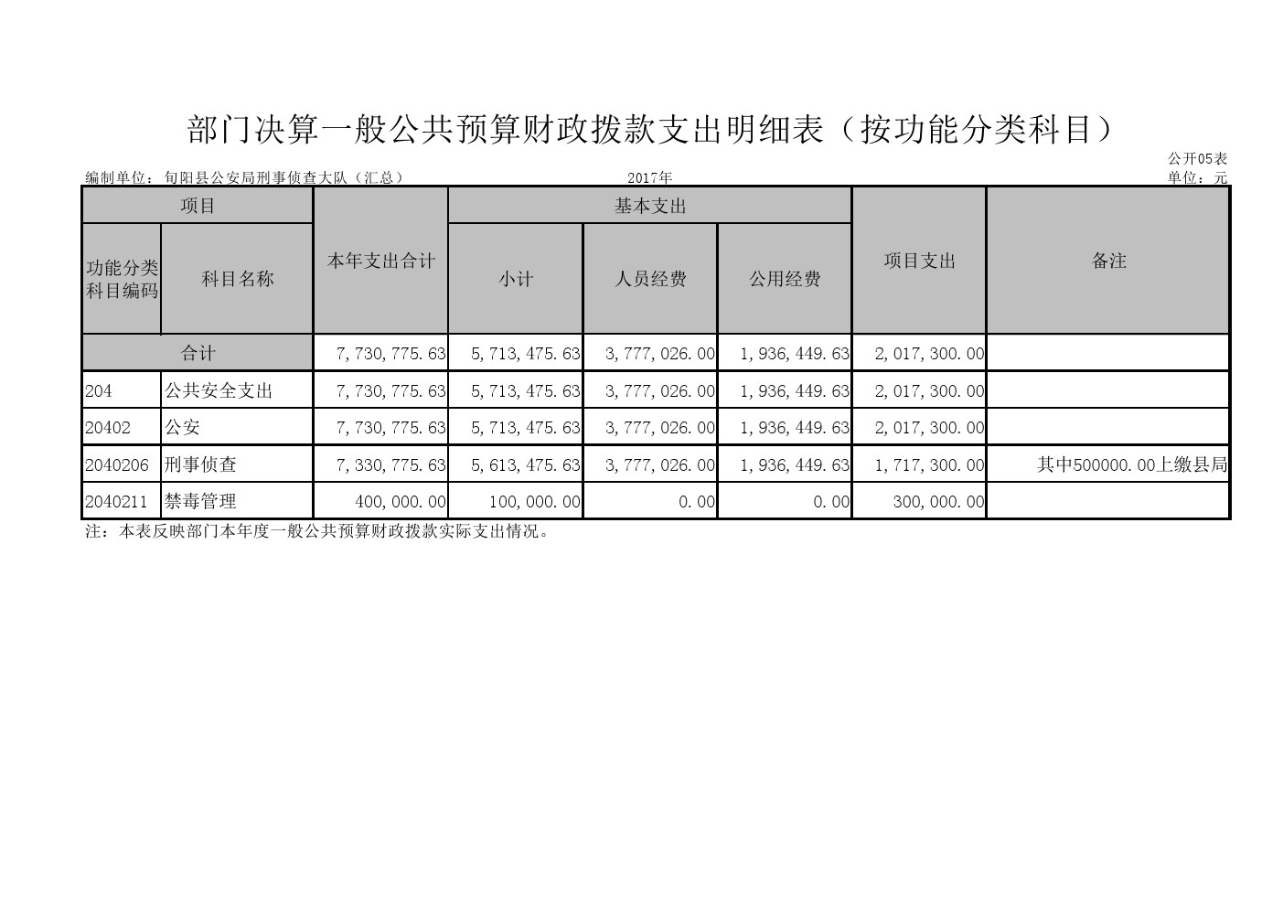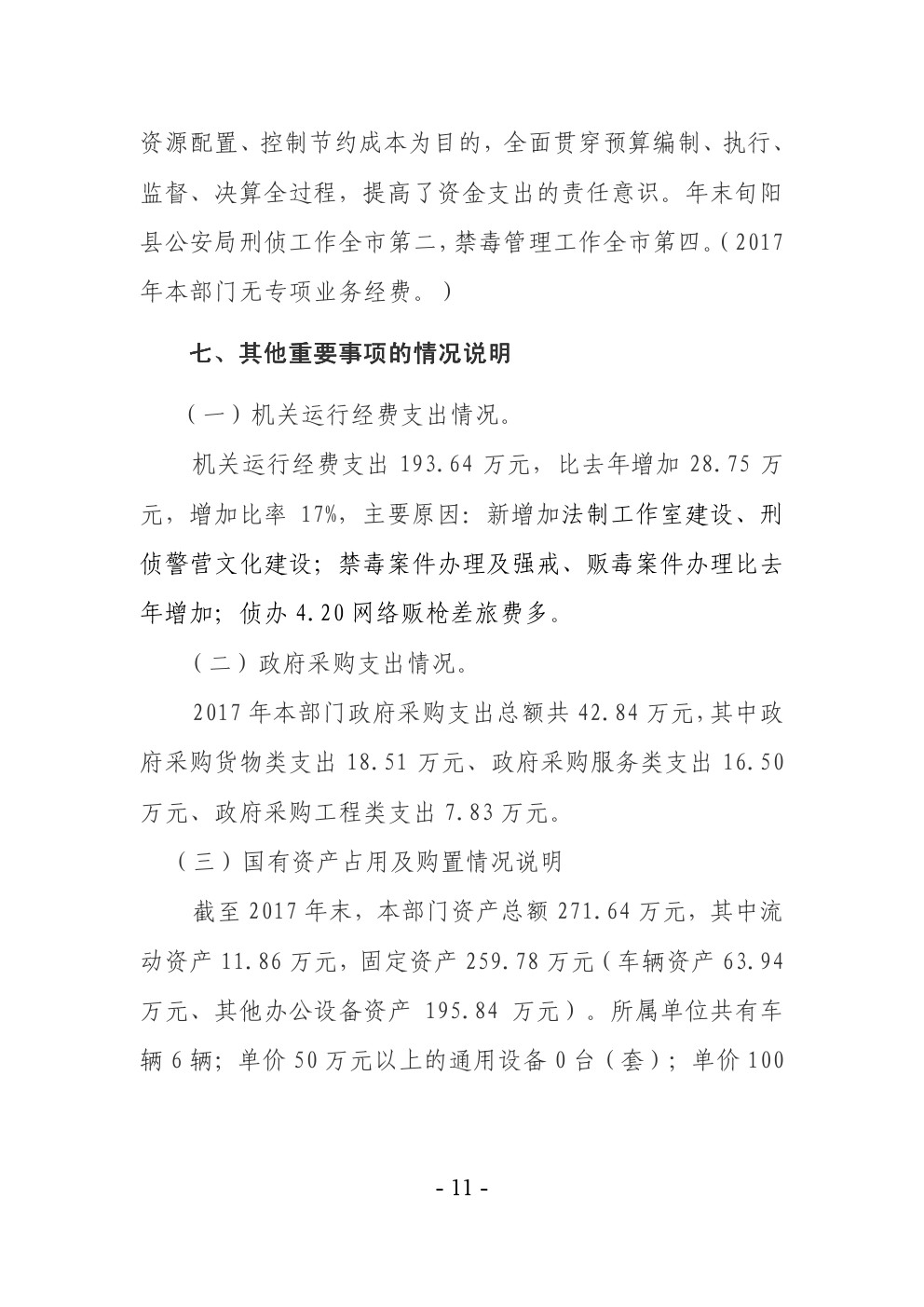 旬阳县公安局刑事侦查大队2017年部门决算说明