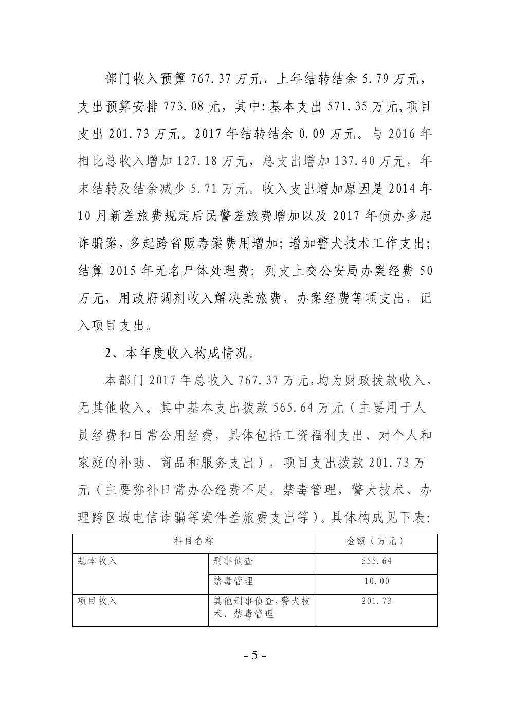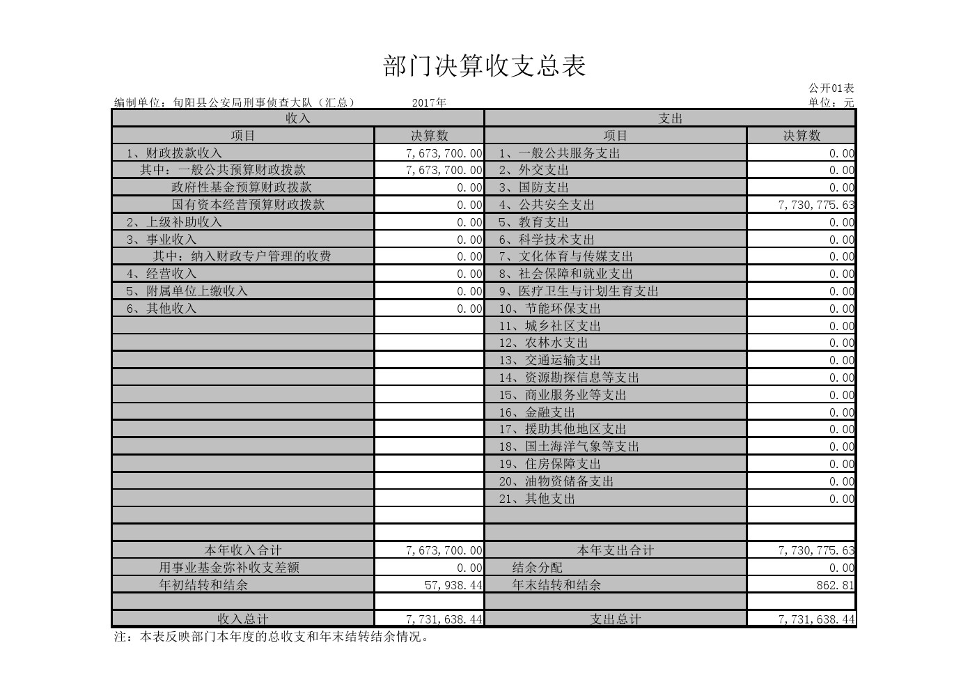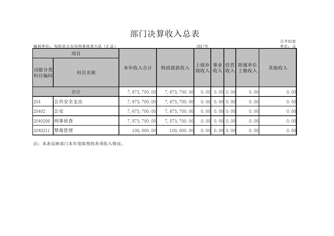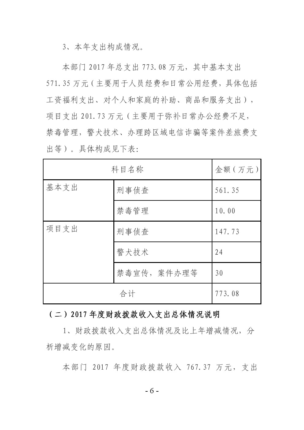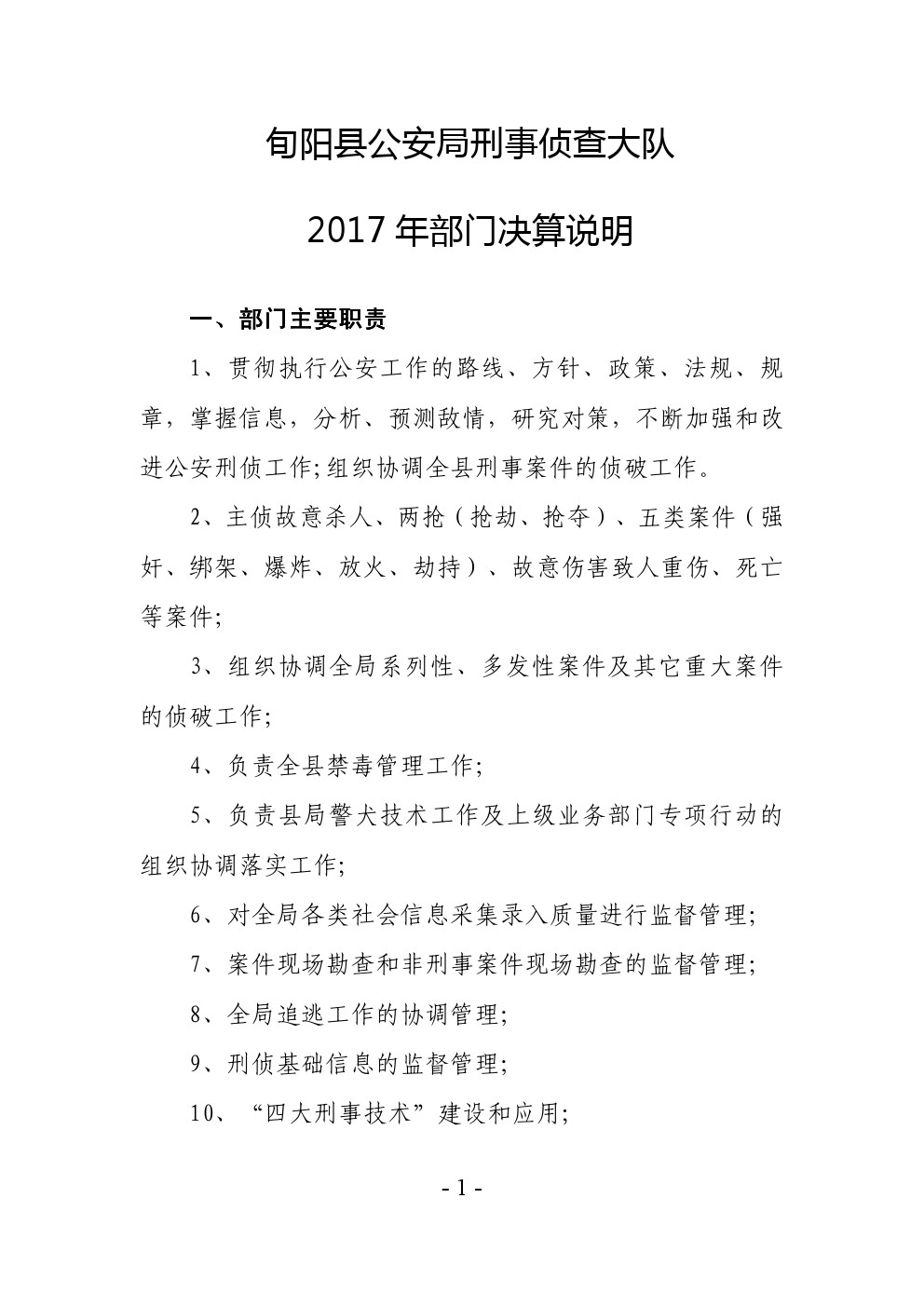 旬阳县公安局刑事侦查大队2017年部门决算说明