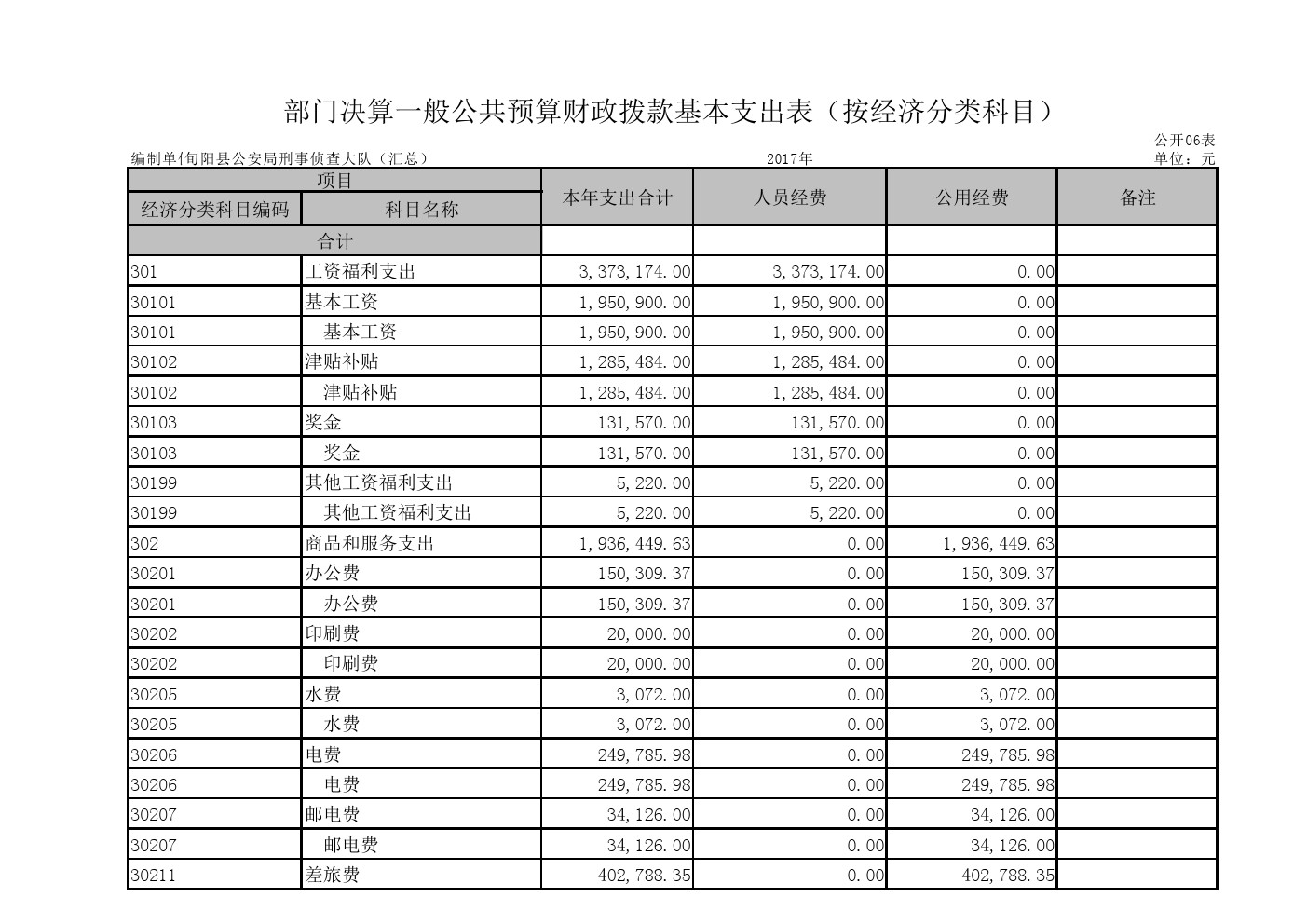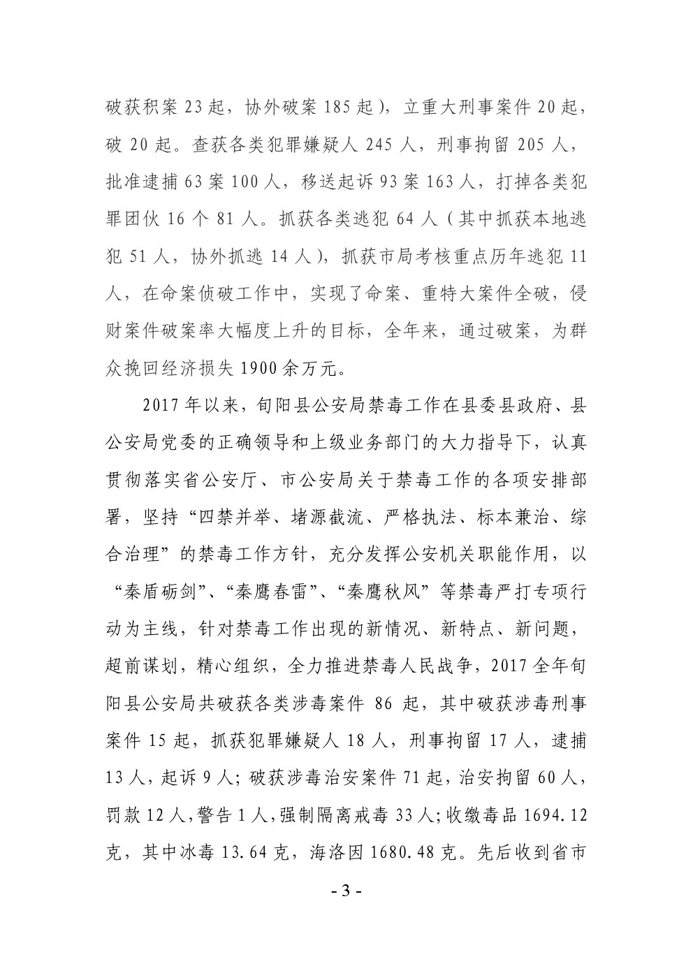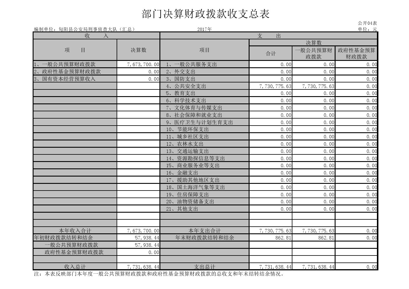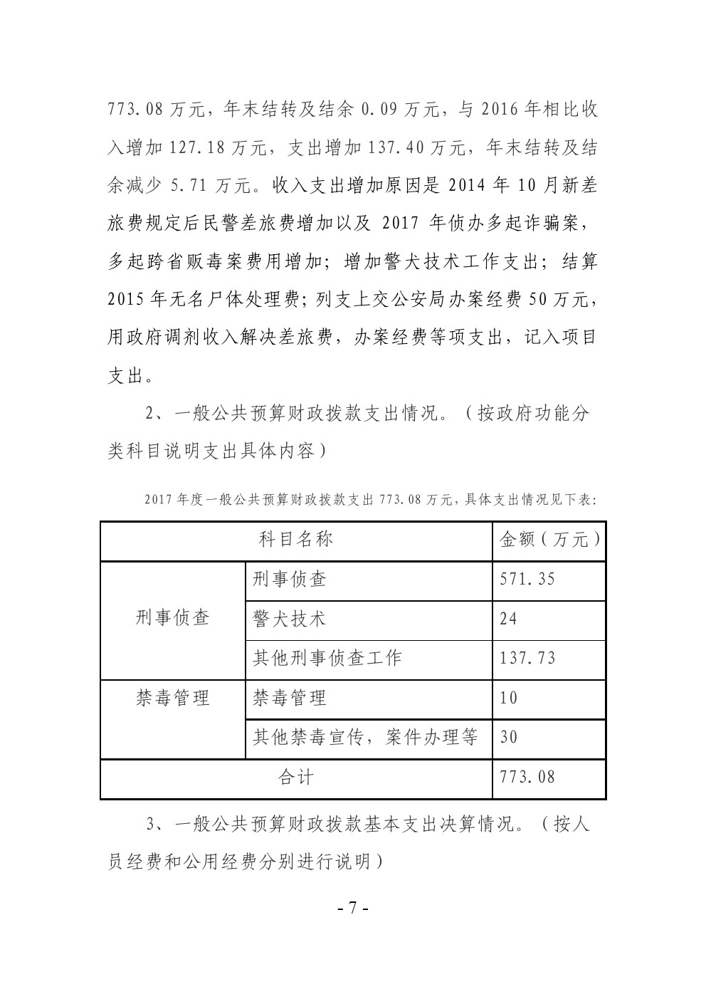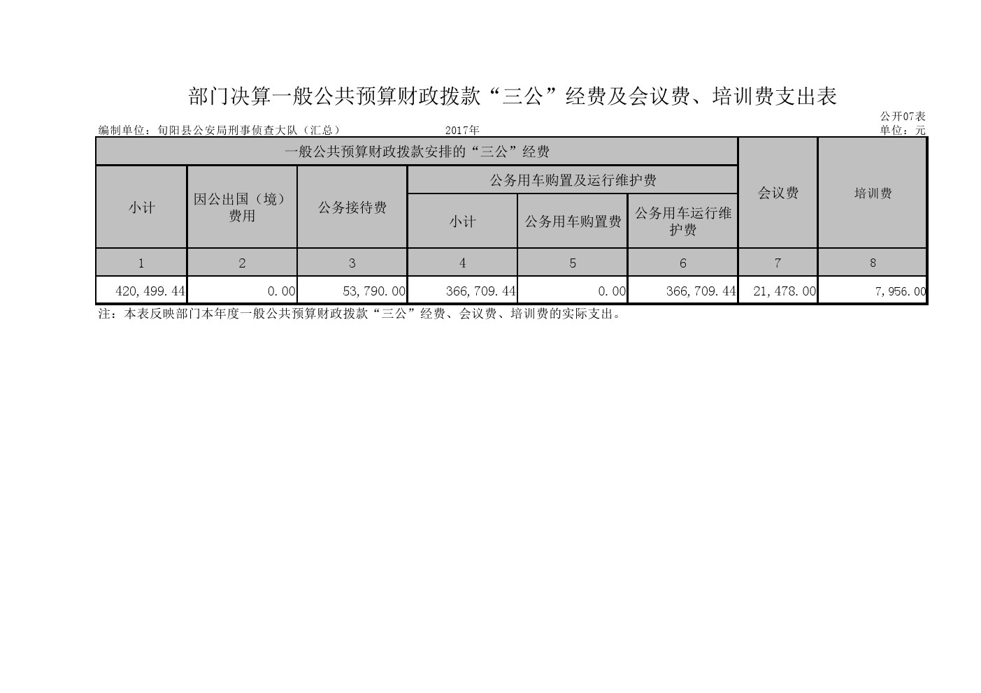旬阳县公安局刑事侦查大队2017年部门决算说明