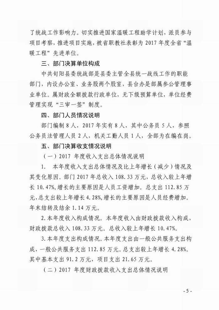 旬阳县机构编制委员会办公室2017年部门决算公开说明