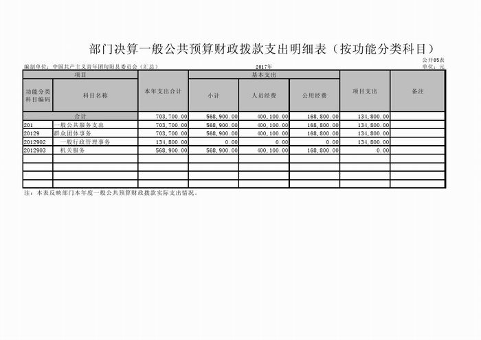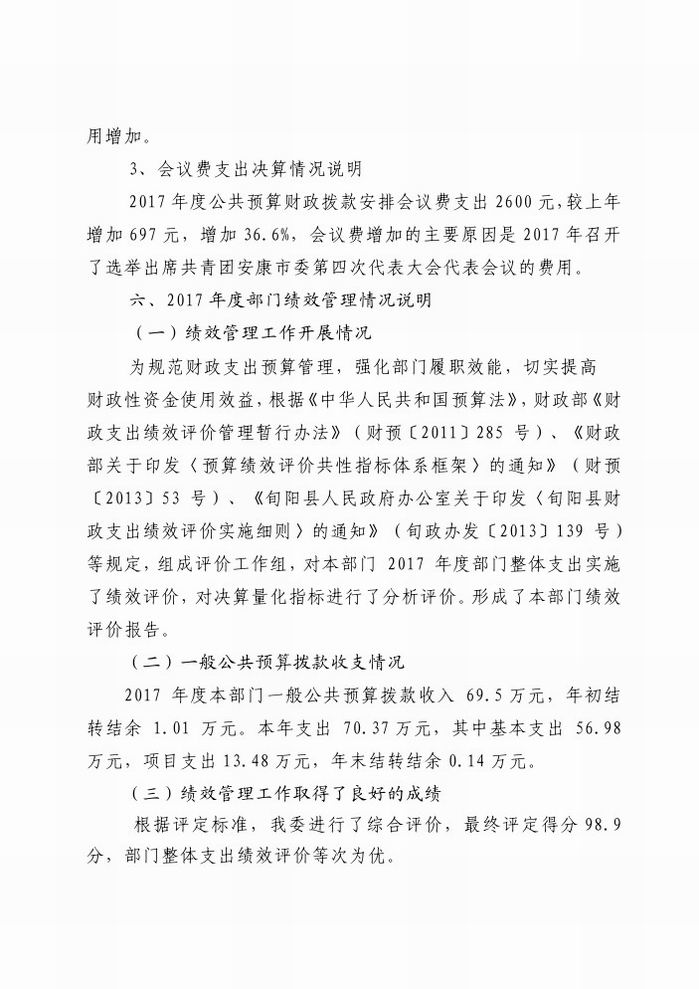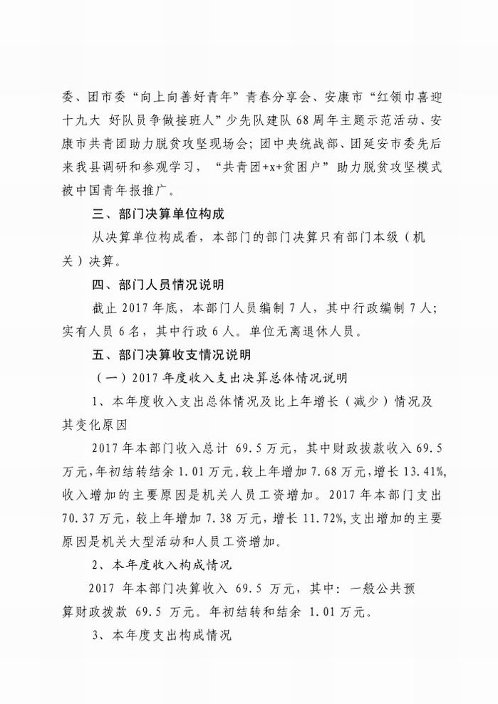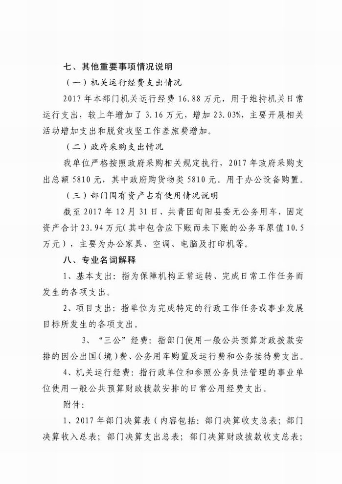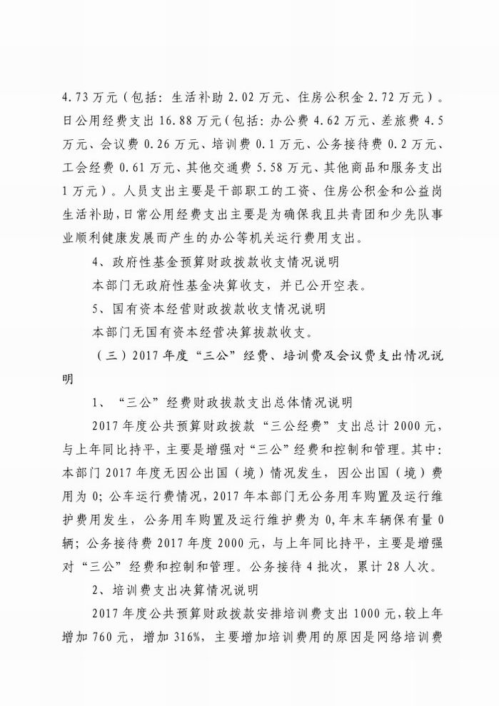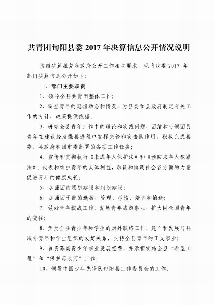 共青团旬阳县委2017年决算信息公开情况说明