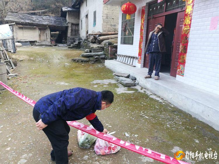 上午9点,双河镇金竹村支部书记詹先斌和驻村工作队员张永铭准时出现在张友财家门前,将手里拎的白菜、芹菜、青椒、食盐和口罩等放到警戒线内,交给张友财,并叮嘱张友财在家安心做好隔离、观测。“最近这一段时间内不要出门,也不要亲戚到自己家里来,吃的、用的、口罩我们会定时给送到门上来,不要私自出门购买,有什么问题,随时打电话。”支部书记詹先斌苦口婆心反复叮嘱道。