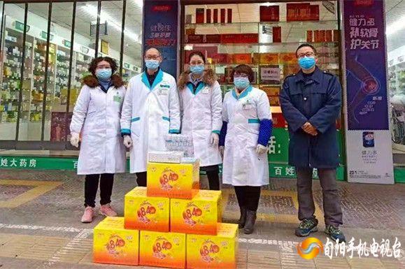 “我们在网络上看见你们一直奔走在一线,关停餐饮酒店、保障物资供应、平稳市场价格、处理投诉举报,我们也帮不上什么忙,只能力所能及的为你们提供一些防护用品,尽尽我们心意。”5日,旬阳县百姓医药有限公司将180瓶消毒液、50双一次性手套、20瓶医用酒精等防护物资送到了市场监管局,为抗击疫情贡献力量。