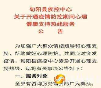 旬阳县启动紧急心理危机干预措施,切实筑牢心理安全防线,缓解疫情给患者、给家庭带来的困扰和不安,帮助老百姓心理“减压”。