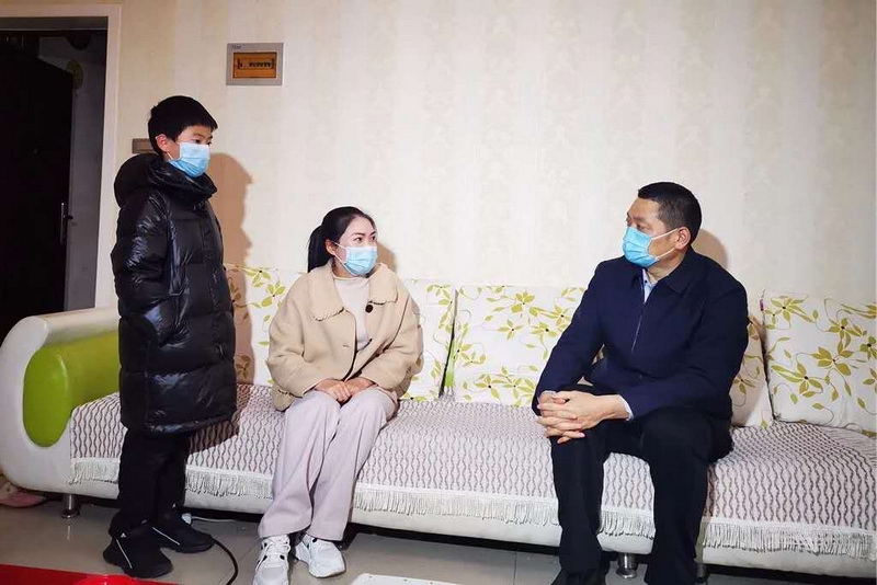 在县医院感染科护士长郭婷家,梁涛对家属的支持、配合表示衷心的感谢。要鼓励、奖励、宣传一线医务人员,关心和解决他们存在的困难。梁涛与正在工作中的郭婷视频连线时说道,我们代表县委、县政府对一线医务人员及其家属表示慰问和感谢,正是由于医务人员的辛勤工作才使得防控工作进展顺利,全县疫情防控形势平稳可控。
