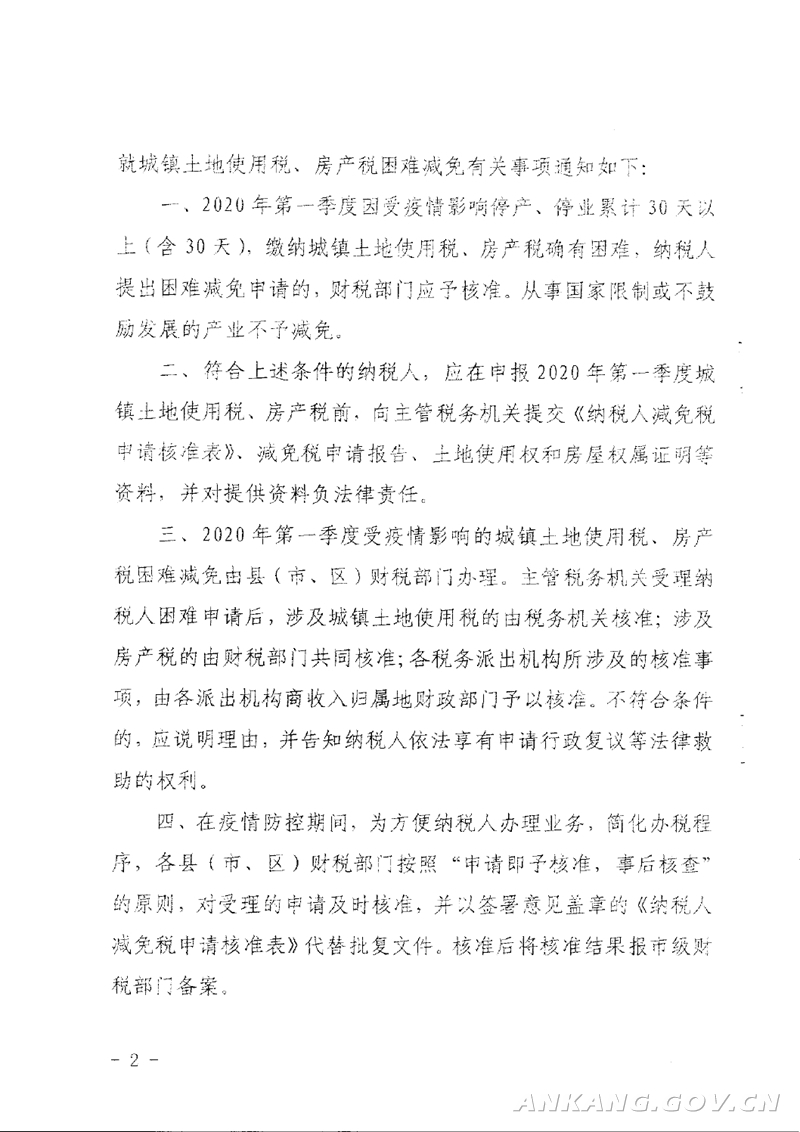关于抗击疫情城镇土地使用税房产税困难减免有关事项的通知