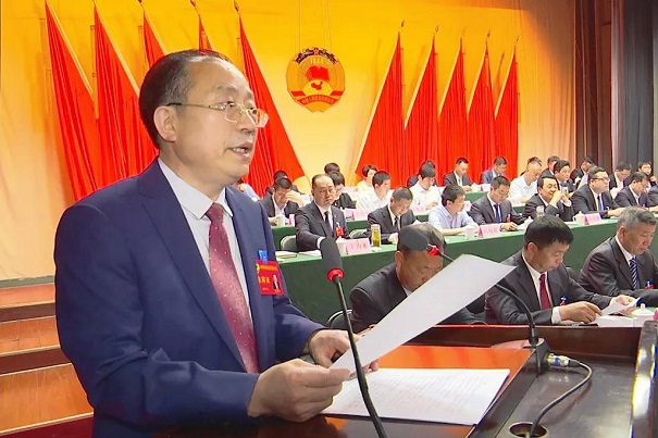 县政协副主席薛进利向大会报告提案工作情况