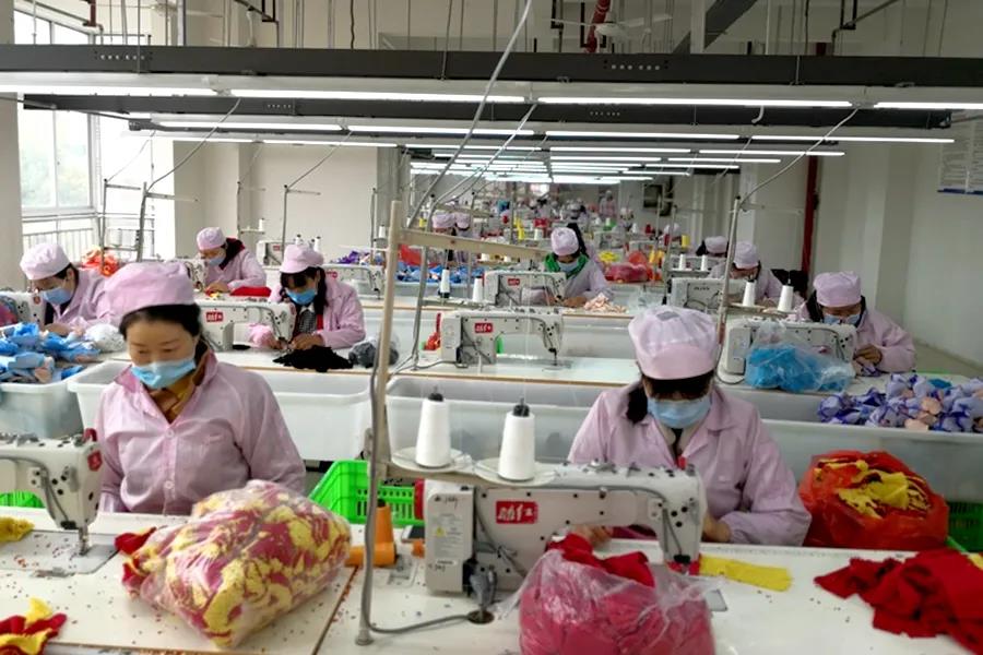 走进位于城关镇的四海逸家毛绒玩具新社区工厂,300多名工人正在忙碌着,绣花、缝纫、塞棉、缝合、装袋……器械咔嗒作响。