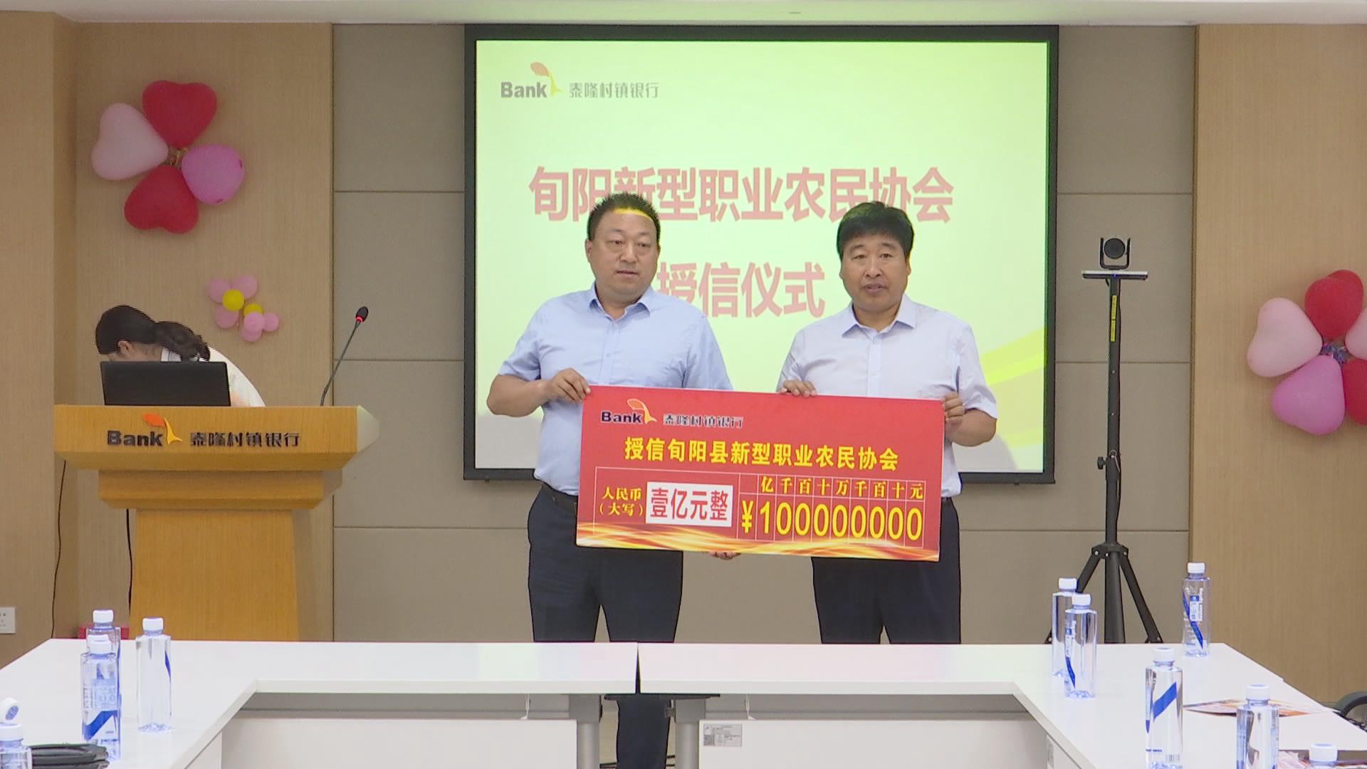 会上,银企双方就合作方案及金融产品进行了交流,相关人员作了表态发言,旬阳泰隆村镇银行为旬阳县新型职业农民协会及20名会员代表颁发了1亿元、950万元的授信牌匾。