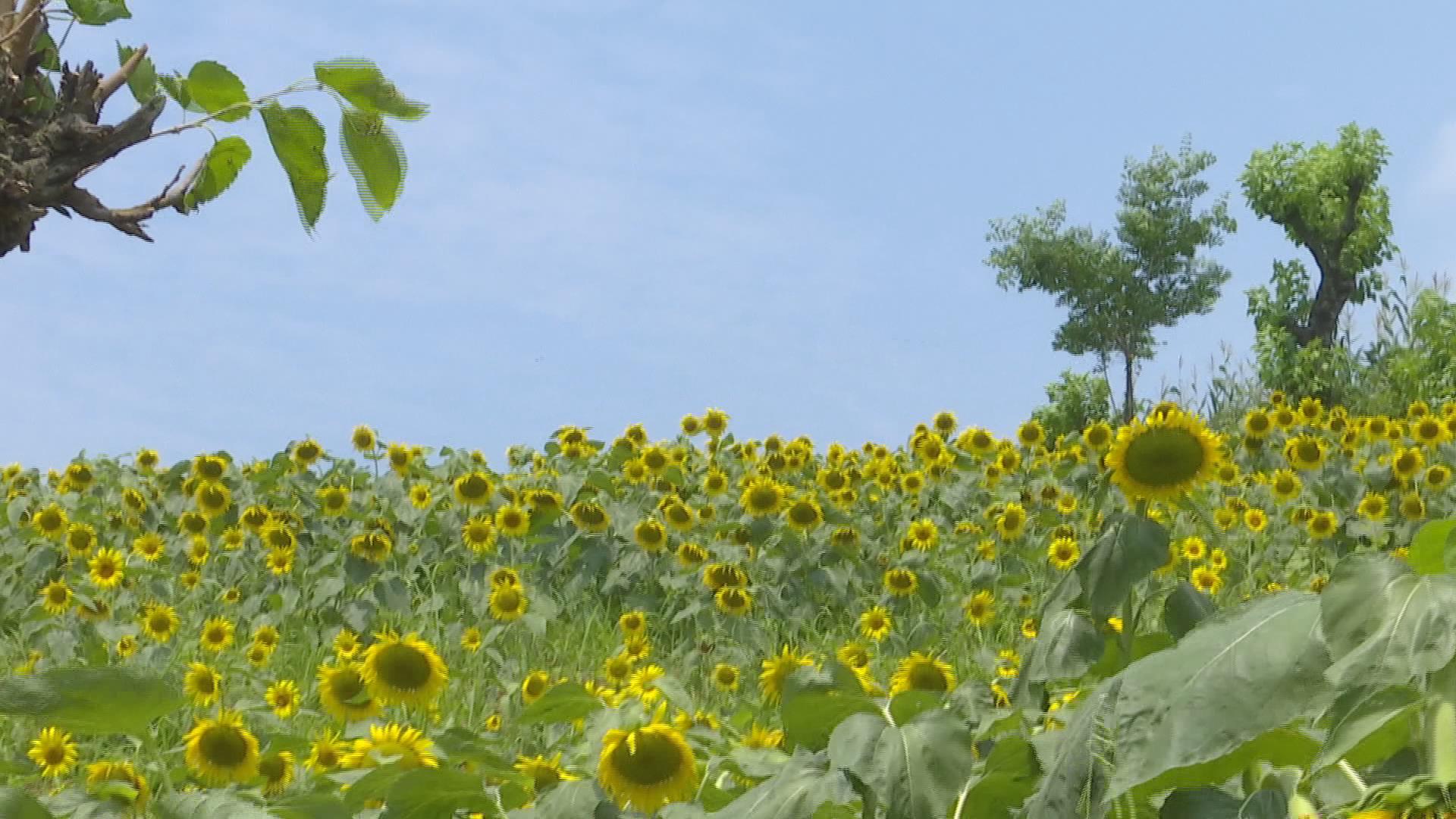 旬阳县甘溪镇甘溪社区今年新发展的55亩油葵迎来了盛开的季节。