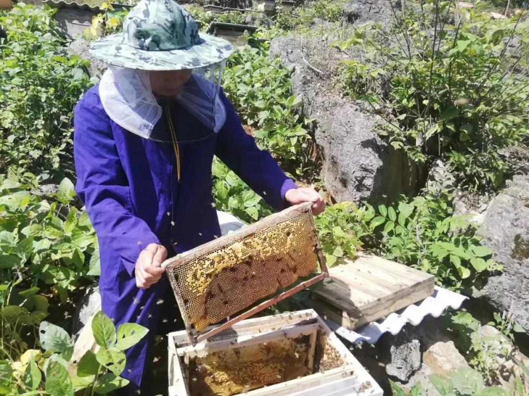 旬阳县新联农业农民专业合作社工作人员准备取蜜