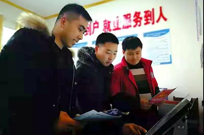 吕河镇险滩村村民正在用劳务公司的互联网设备查询工作岗位