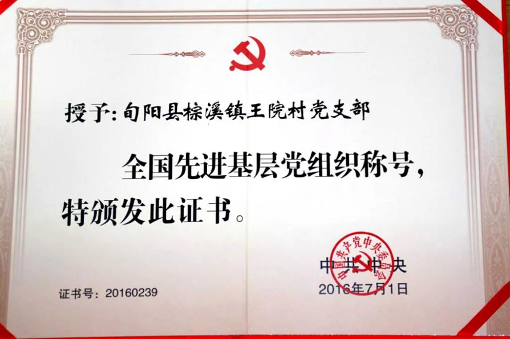 棕溪镇王院村党支部被中共中央授予全国先进基层党组织称号