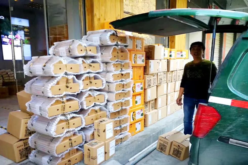 旬阳县积极发展电商企业,拉动消费扶贫。图为县内电商企业包装好的特产即将销往全国